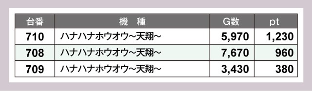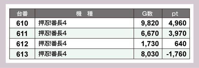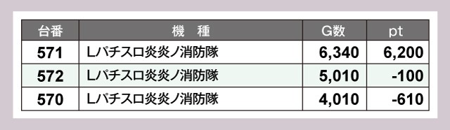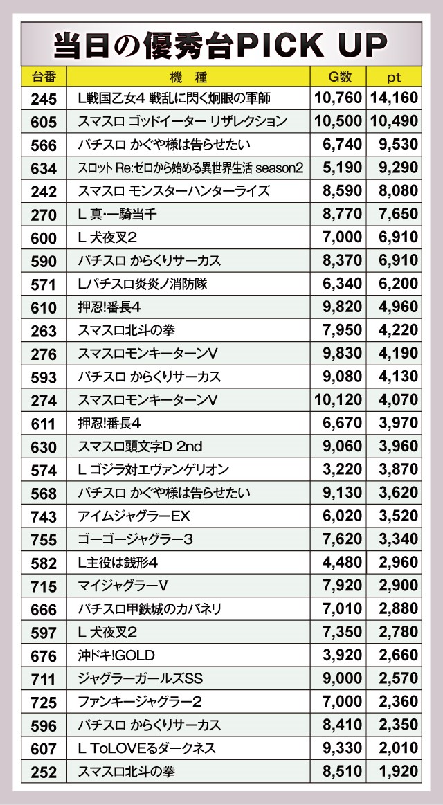 『L 犬夜叉2』『押忍!番長4』『Lパチスロ炎炎ノ消防隊』でも4桁pt獲得の好調台が続出しており、プレイヤーたちを心から楽しませていた。