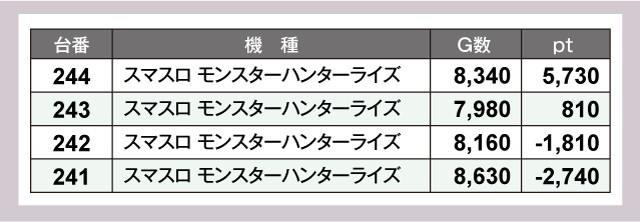 『スマスロ モンスターハンターライズ』では244番台が+5,730ptと見事な活躍を見せていた。