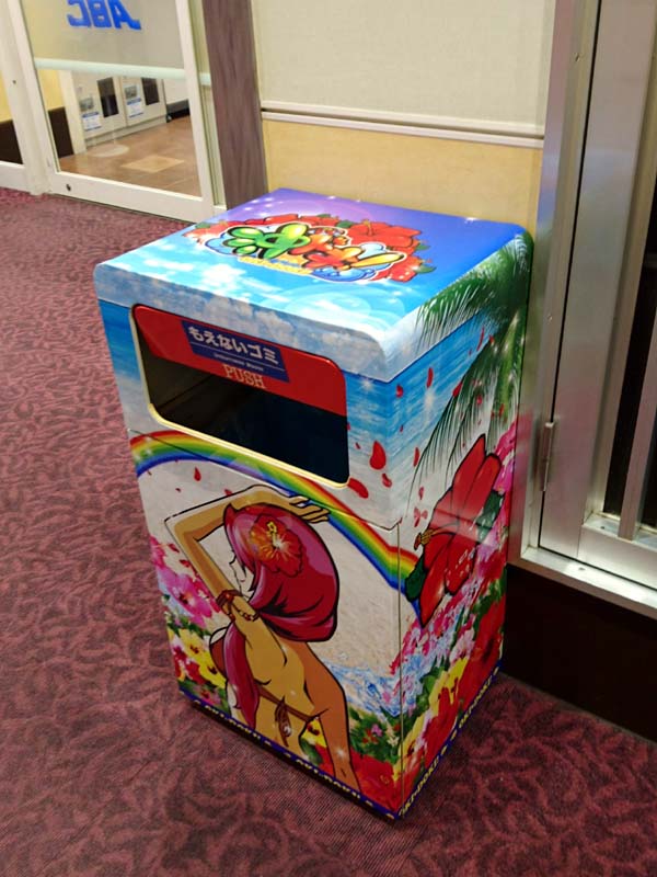 店内のゴミ箱で機種のアピールを行うなど、他店とは一線を画した装飾が目に付いた。