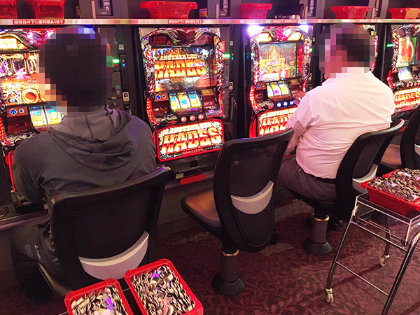16時頃に4円パチンコを見て回ると、「CRぱちんこ必殺仕事人Ⅴ」や導入間もない「CRひぐらしのなく頃に〜叫〜」などが大盛況。華麗なパフォーマンスを見せるプレイヤーが多く、シマ全体が華やいだムードに包まれていた。
