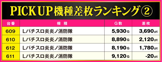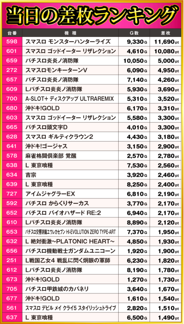 当日の差枚ランキング