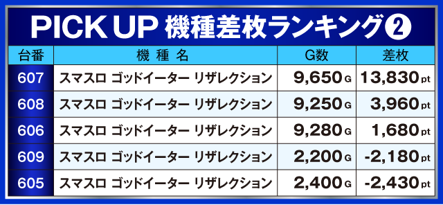 『スマスロ ゴッドイーター リザレクション』は9,000G超えの台がいずれもプラスptで、1万ptオーバーも飛びだしプレイヤーの期待に応えていた。