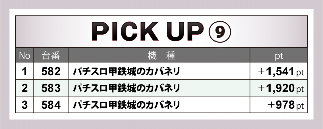 『パチスロ甲鉄城のカバネリ』にも3台を通して勝利に成功したところあり。同店の調査では好調が定例となっている機種であり、この度もキッチリと仕事を収めた感が強かった。