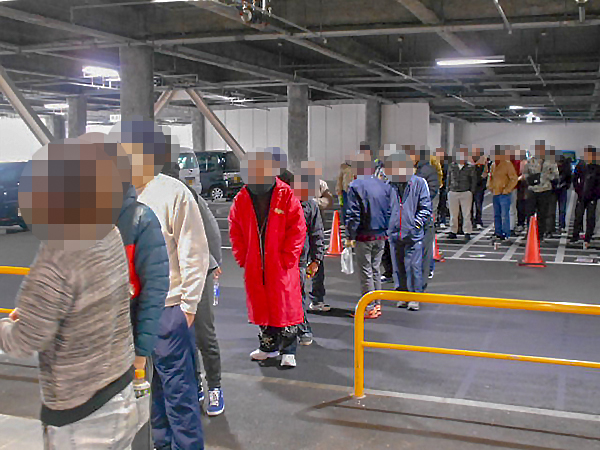 開店前から150人ものプレイヤーが集結。各人、入店の時刻が来るのを心待ちにしているようだった。
