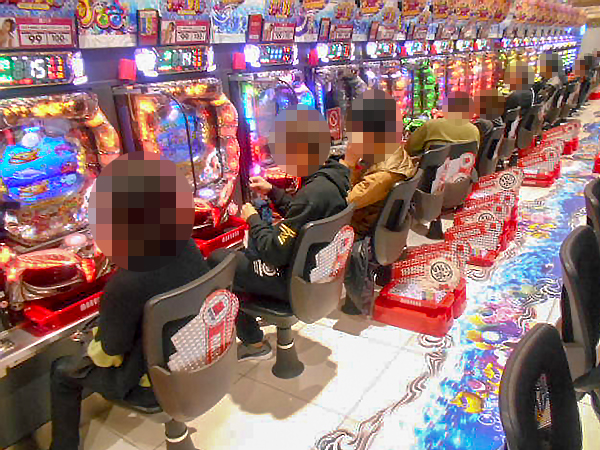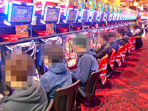 開店前からおよそ130人のプレイヤーが足を運んでおり、遊技開始を前にして、高揚した表情を見せていた。