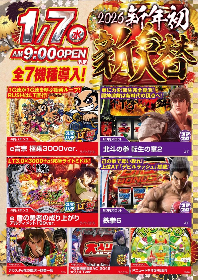 タイホー高丘店 本日新台入替初日 朝9時開店