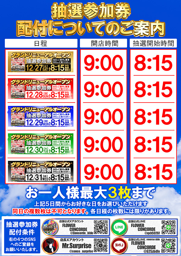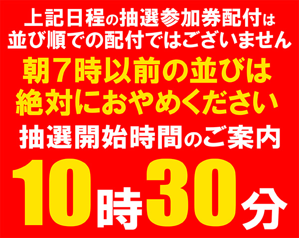 整理券 8:15までにお並び頂いた方の入場整理を行います。 |