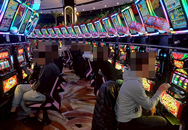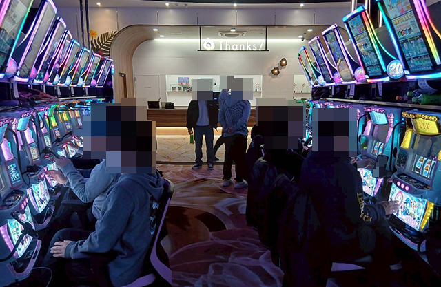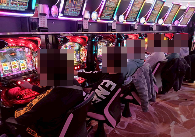 『スマート沖スロ ニューキングハナハナV』や『ネオアイムジャグラーEX』などに活気のある景色が広がっていた。