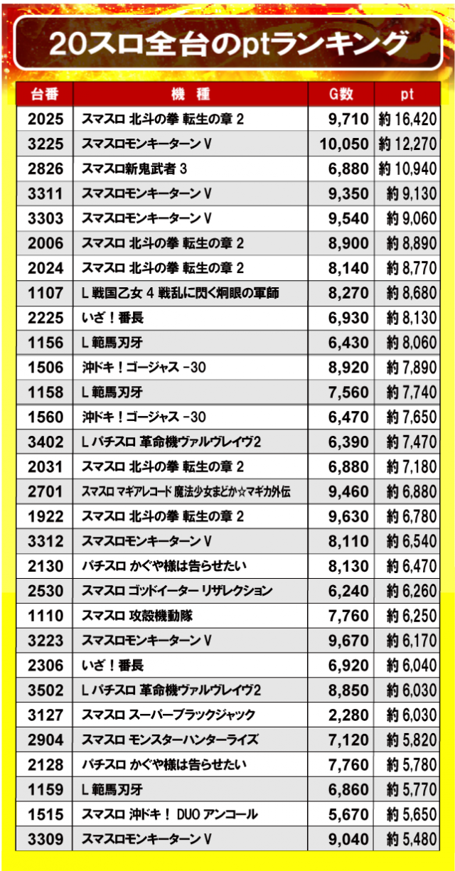 ①20スロ全台のptランキング