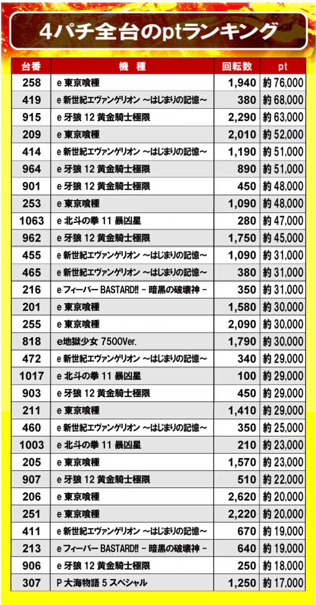 ②4パチ全台のptランキング