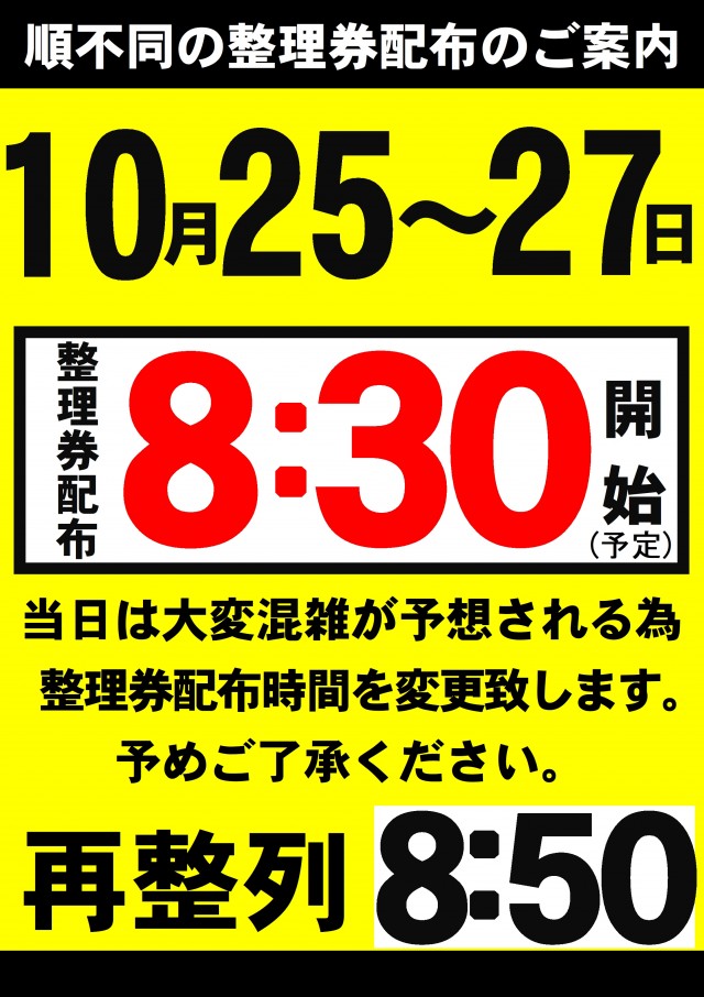 明日10/21(火)★2日間連続新台入替(予定)&周年月間★