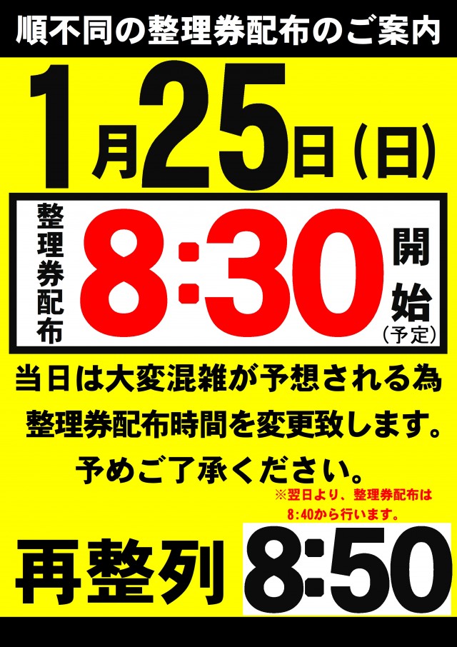 明日1/20(火)★2日連続新台入替(予定)★ご来店下さい!