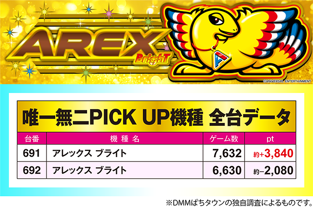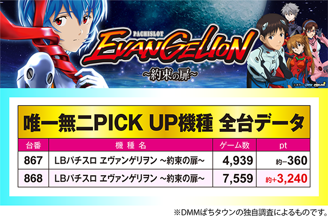 「アレックス ブライト」の691番台と「LBパチスロ ヱヴァンゲリヲン ~約束の扉~」の868番台は約+3,200ptを上回った。