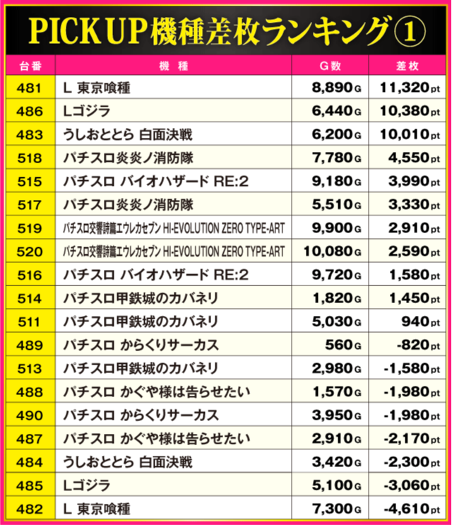 ※差枚pt順に掲載しています。