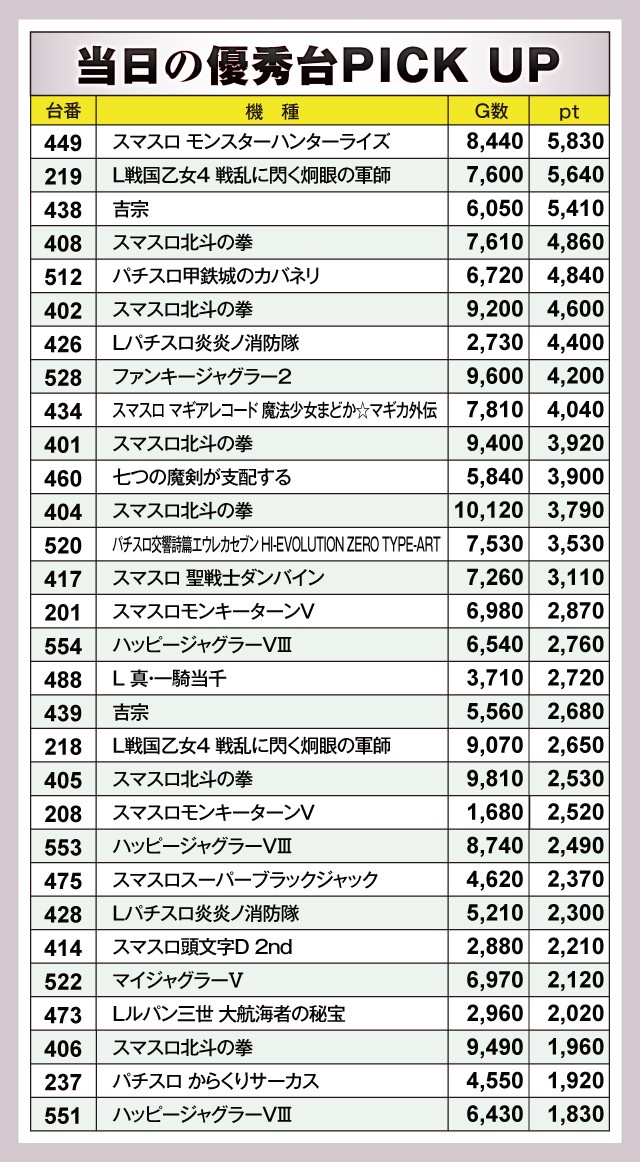 ※差枚pt順に掲載しています。