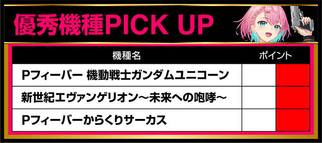 「Pフィーバー 機動戦士ガンダムユニコーン」は、設置されている4台のすべてがプラスとなった。