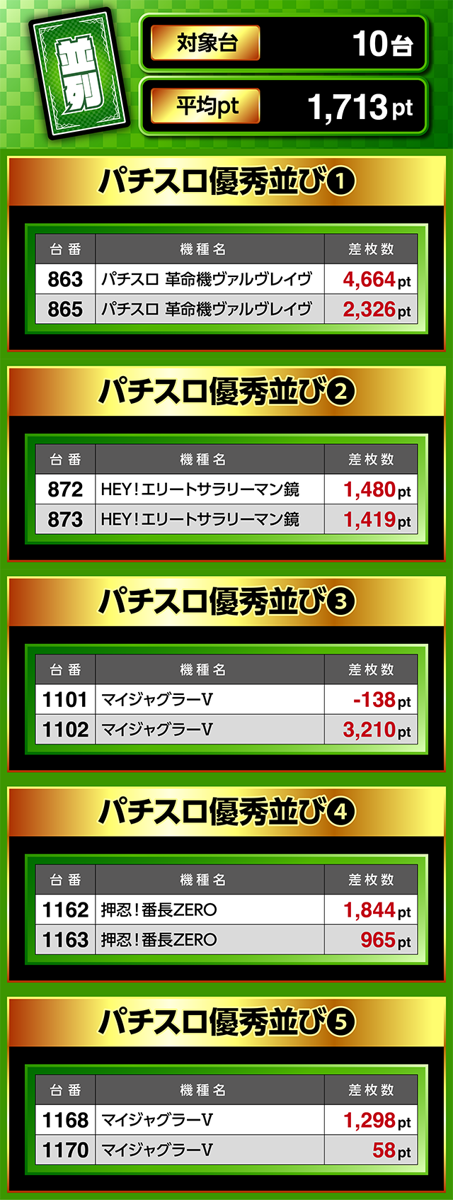 5ヶ所の全並びに1,200pt以上の台アリ。
