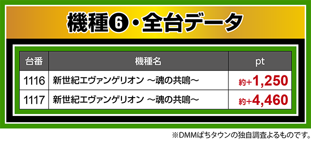『パチスロ からくりサーカス』の881番台と『新世紀エヴァンゲリオン 〜魂の共鳴〜』の1117番台は約+4,400pt以上となった。