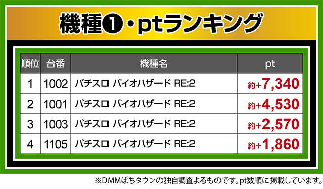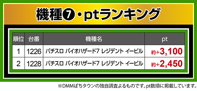 『キングハナハナ-30』や『パチスロ バイオハザード7 レジデント イービル』も、+3,000pt以上を記録した。