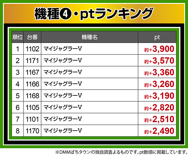 約+2,400ptを超えた台がいくつもあったのが『マイジャグラーⅤ』!