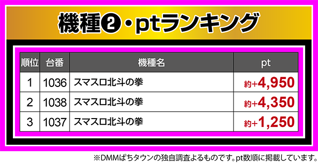 『スマスロ北斗の拳』では、1036番台と1038番台が約+4,300ptを上回った。