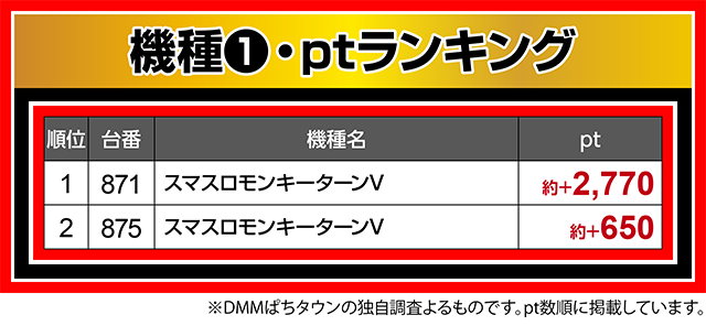 『スマスロモンキーターンV』は、871番台が約+2,700ptオーバー。