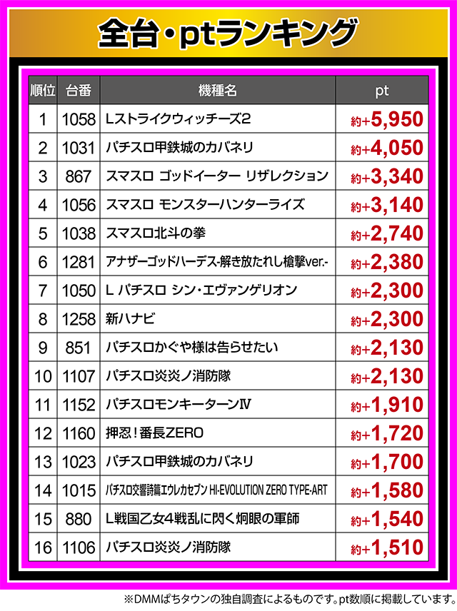 ※なお、本記事中のデータは全てDMMぱちタウンの独自調査によるものです