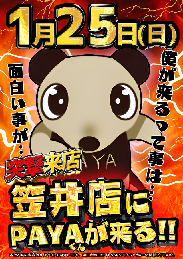 1/25(日)★PAYAくん&蒼りなさん来店★