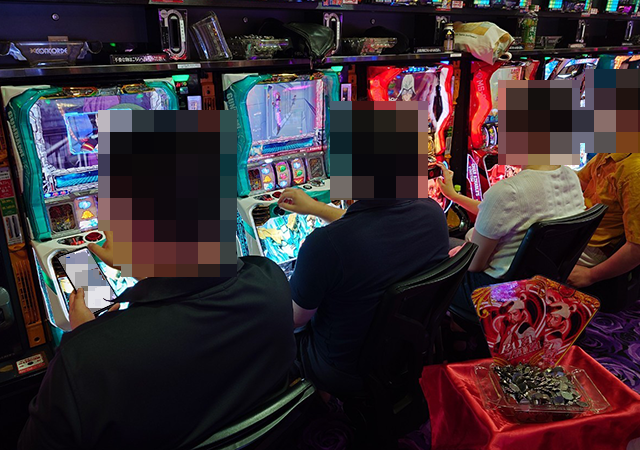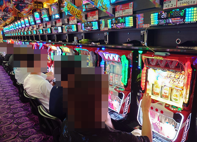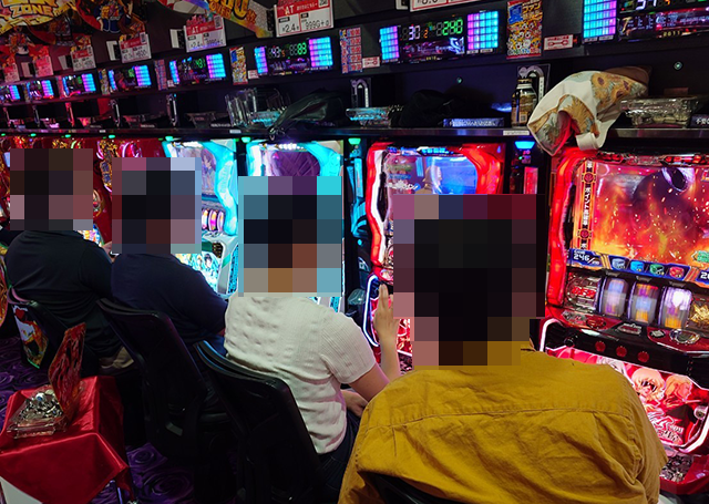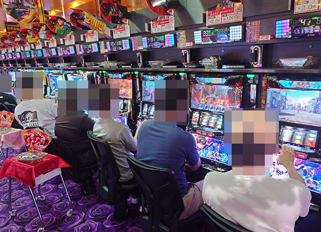 『Lパチスロ炎炎ノ消防隊』や『パチスロ 新鬼武者2』も空き台はなく、笑顔がズラリ!