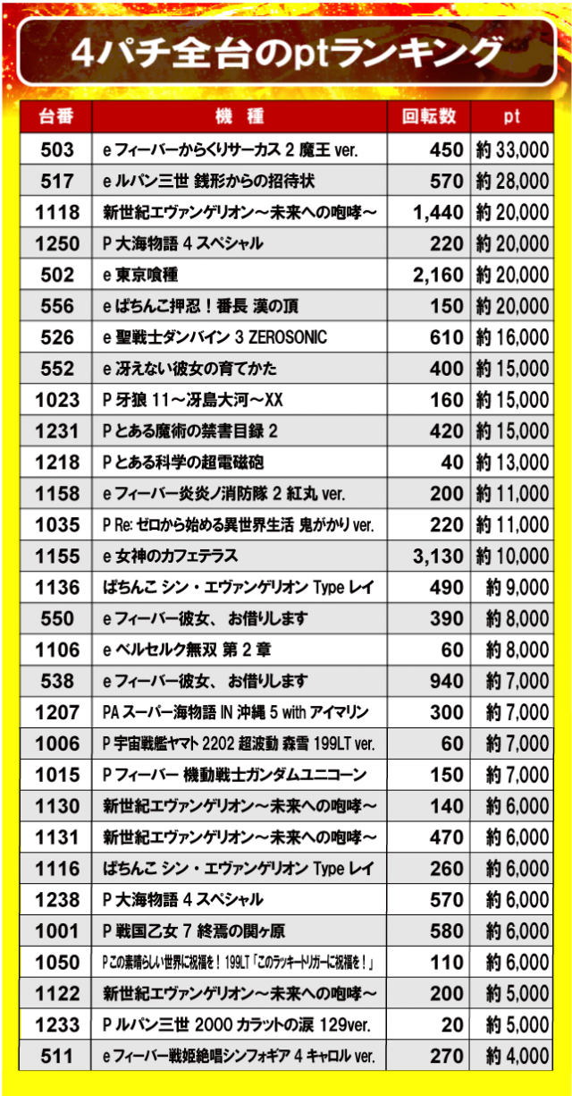 ②4パチ全台のptランキング