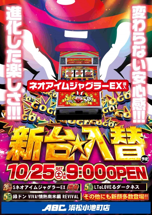 10/18(土)☆新台入替☆ネオアイムジャグラー更に増台!!