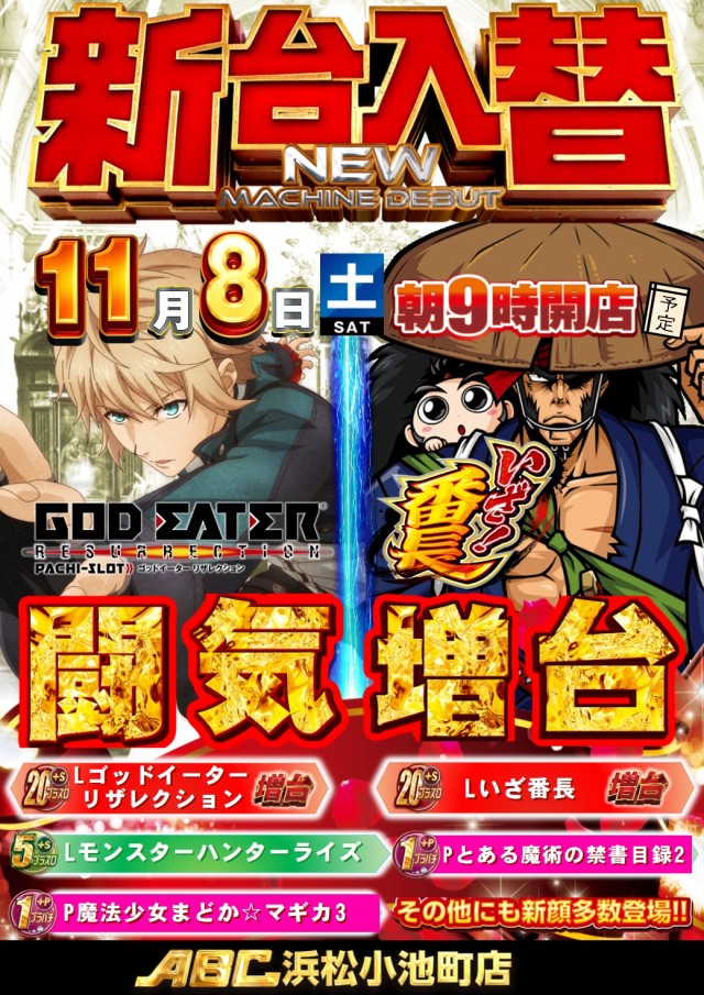 11/1(土)☆新台入替☆新顔機種多数導入済み!!