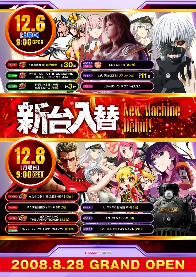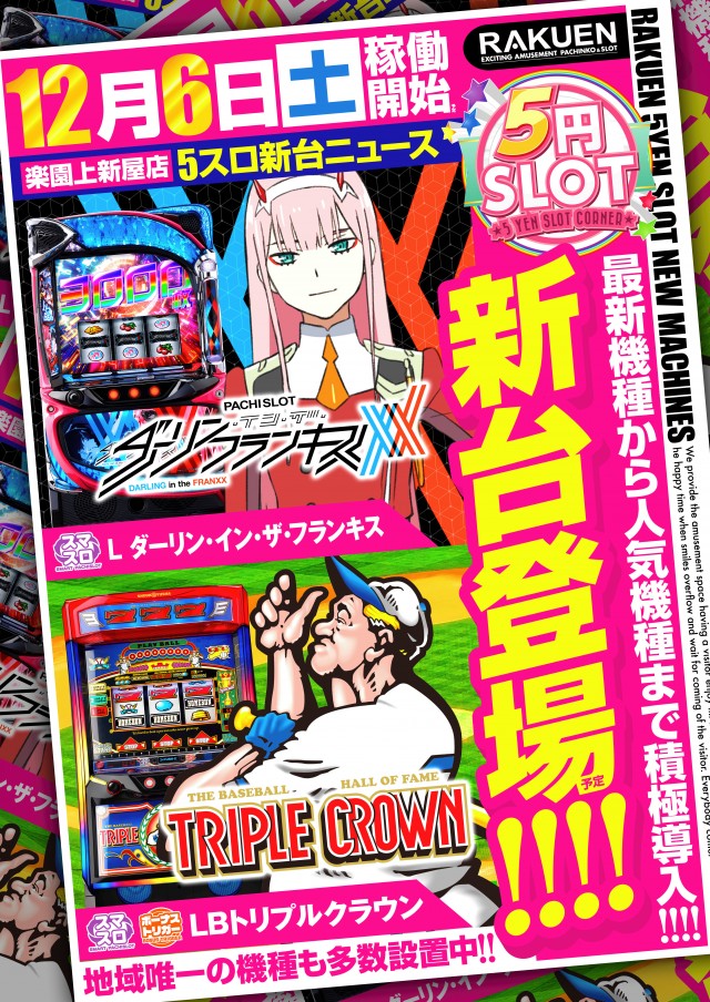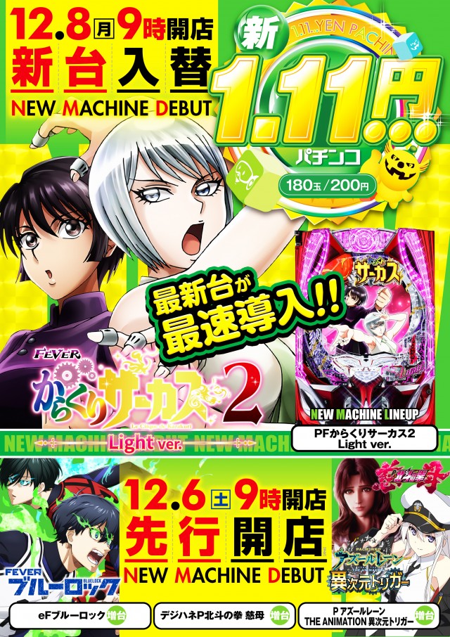 全機種・全台でお楽しみ下さい!!朝9時開店!!