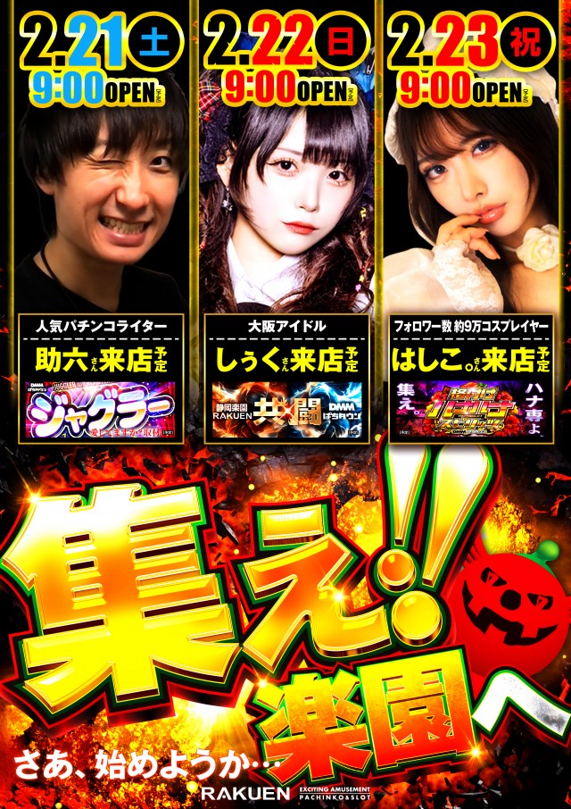 ①8:30~入場整理券の配布(お客様の人数により、早めさせて頂く場合が御座います。) ②8:50入場前の再整列(お客様の人数により、早めさせて頂く場合が御座います。) ③9:00~入場開始 |