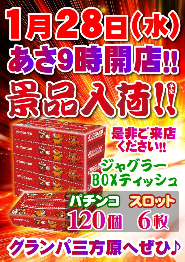 1月28日(水)グランパ三方原元気に朝9時開店です!