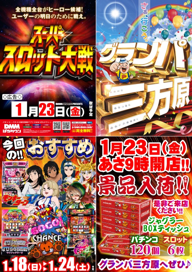 1月23日(金)グランパ三方原元気にあさ9時開店です!