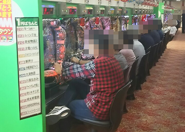 15時頃のパチンココーナーをみると、1円パチンコが大人気。
