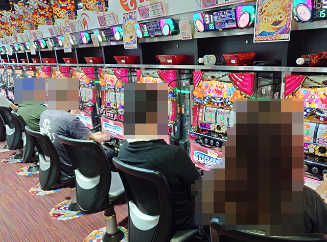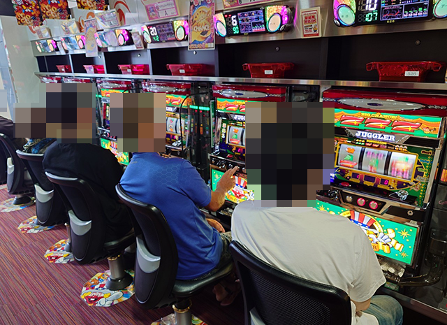 『マイジャグラーⅤ』にも遊技を楽しむ姿があり、506番台が約+2,800pt以上。