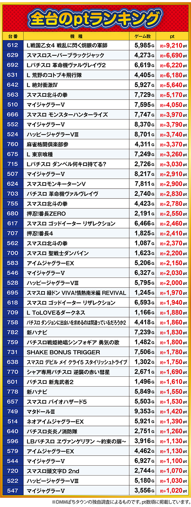 「PaPaOne」では、「パチスロ 革命機ヴァルヴレイヴ」の561番台が約+6,700ptオーバー。