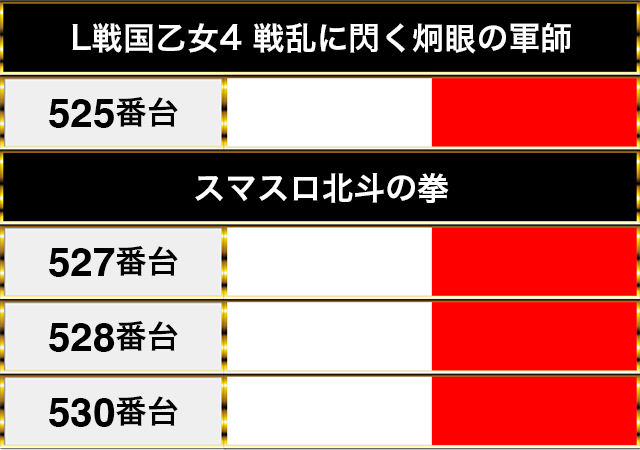 1日を通したデータをみると、『L戦国乙女4 戦乱に閃く炯眼の軍師』の525番台がプラスpt。