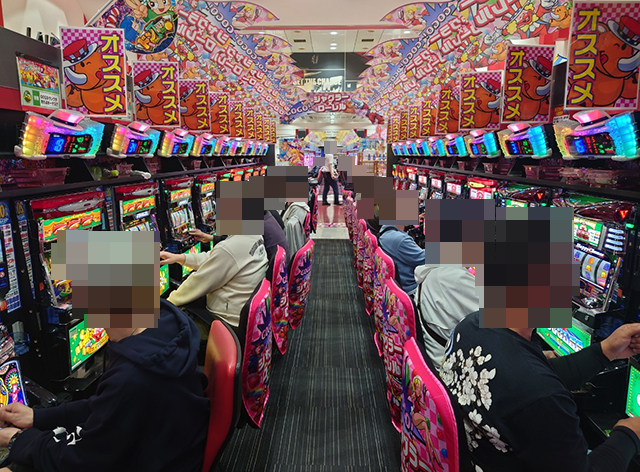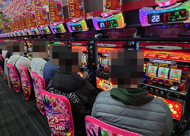 さまざまな機種が楽しまれていた「ローレル入野店」。遊技を満喫しているような姿をはじめ、魅力に感じることがいくつもあった。