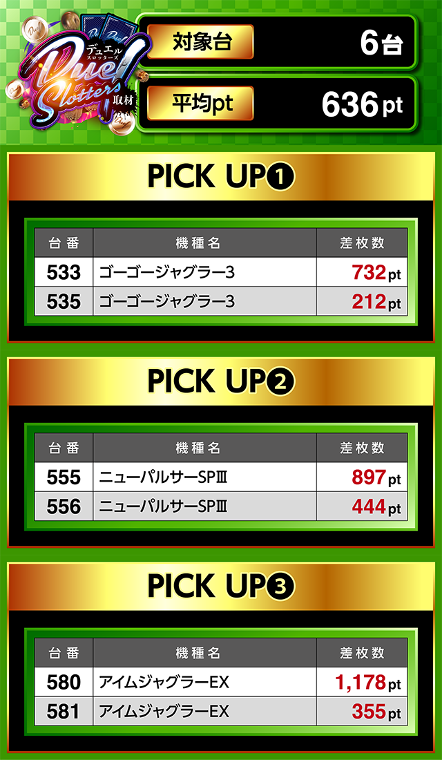 PICK UP並び・580番台「アイムジャグラーEX」…1,178pt