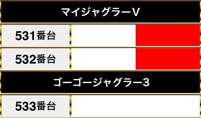 『マイジャグラーⅤ』の531番台と532番台も並んでプラスpt。