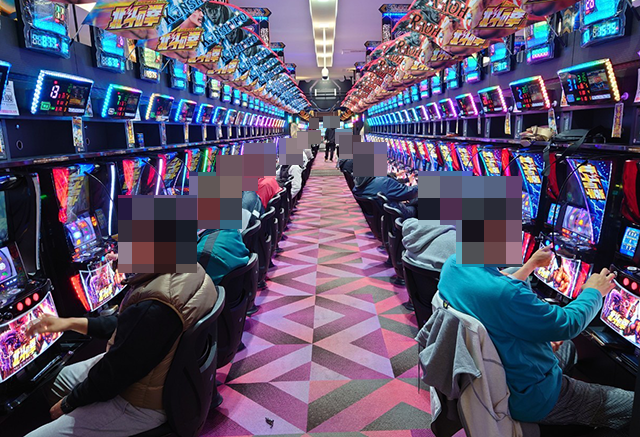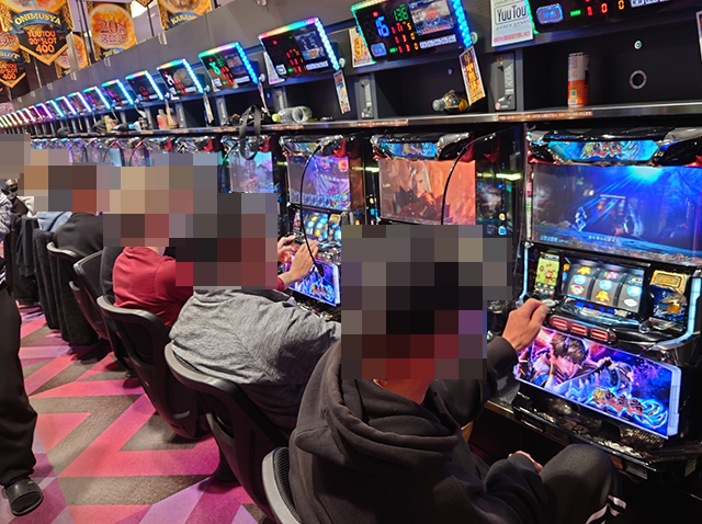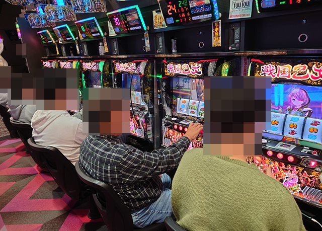 『パチスロ 新鬼武者2』にはプラスptの台が並ぶ場所が複数あった。