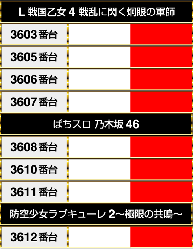 3機種を通してみると、最終的に3603番台から3612番台までが並んでプラスptを記録した。