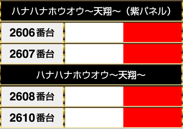 『ハナハナホウオウ~天翔~(紫パネル)』の2台は『ハナハナホウオウ~天翔~』の2台と並んでプラスpt!