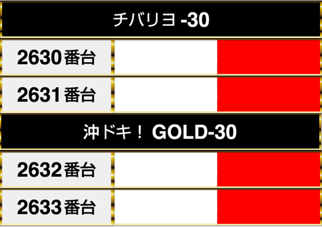 沖スロでは、『チバリヨ-30』の2630番台から『沖ドキ!GOLD-30』の2633番台までが連なってプラスptを記録!!