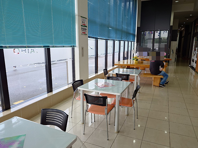 店内には、外からの光が入る広いレストスペースがあり、ゆったりと休むことができる。