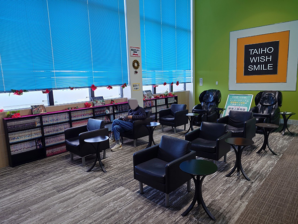 レストスペースにはたくさんの漫画本が用意されており、プレイヤーからの評価も高いように感じられた。