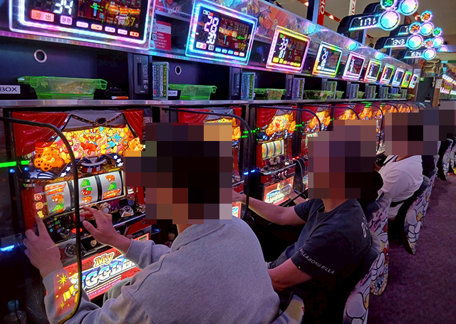 たくさんのプレイヤーが遊技を楽しんでおり、多彩な機種に活気があった。